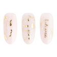- Far scivolare l'adesivo sull'unghia nella posizione desiderata staccandolo dal supporto (per un'applicazione ottimale applicare il design sulla dispersione del colore o della base).